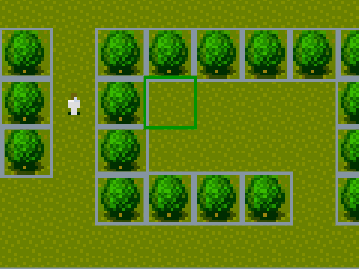 Within a few hours, the little peons could be commanded to gather resources from nearby trees. I didn't have any "wood" sprite from the assets so peons grab dogs from the trees (to represent wood). Bark!